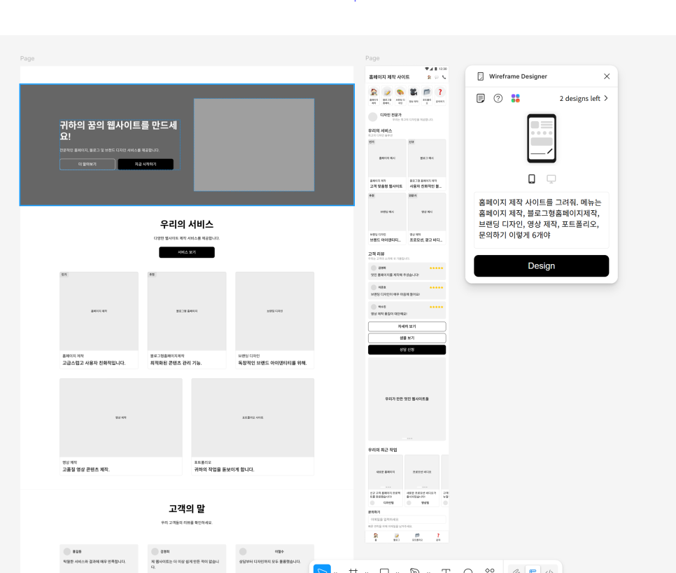 3초만에 만들어 지고, 와이러프레임을 만들어주는 AI이기 때문에